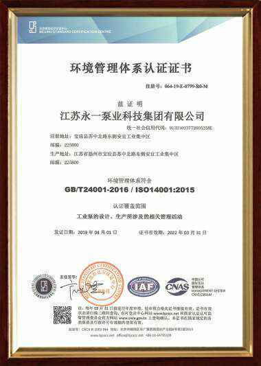 环境管理ISO14001认证证书(中文)