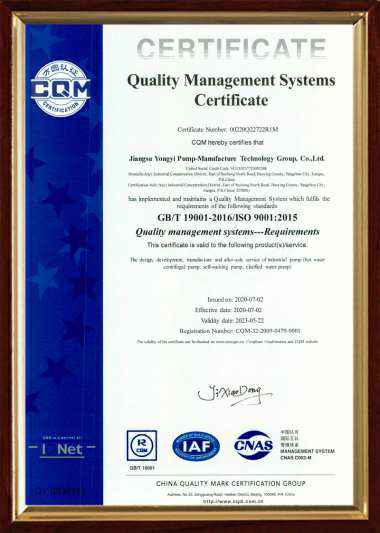 采用国际标准产品标志证书高温高压离心泵